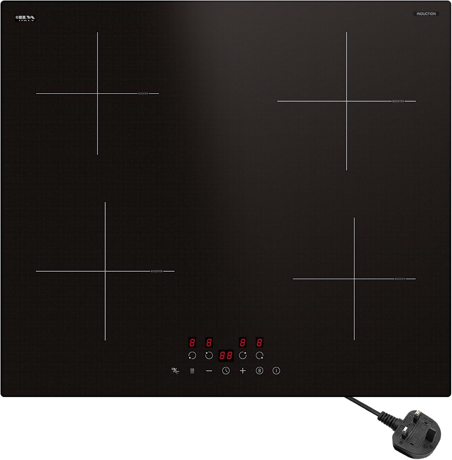 • Stutesmun IHZ460 4 Zone Induction Hob Cooktop, Bluck Gluss Cooker, Touch Control, 6800W, 60cm, Bluck