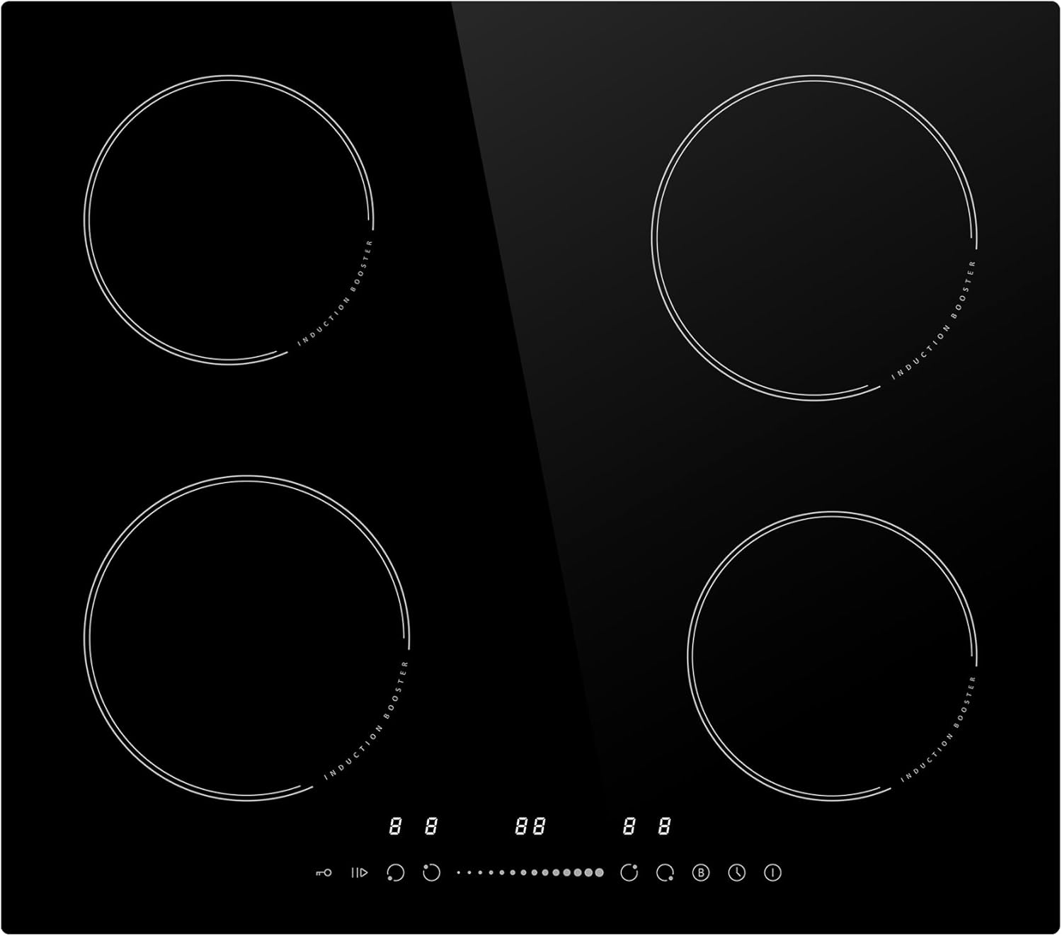 • uEG 3000 Series Induction Full Hob, IBX64200CB, 4 Cooking Zones, 49cm, Touch Control, Precise Heut Control, Booster Function, Key Lock, Bluck