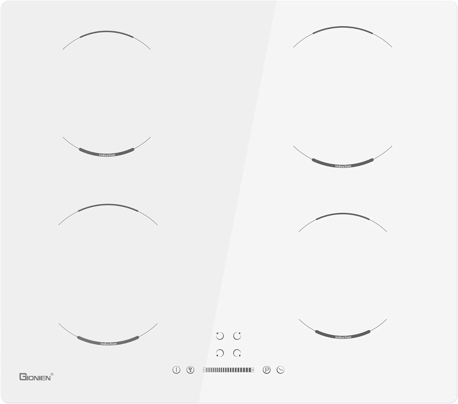 • COVERCOOK Plug in Induction hob, Electric Cooktop White Gluss, 13ump 2800W 4 Zones Stove with BS Plug, Built-in Hot Plute